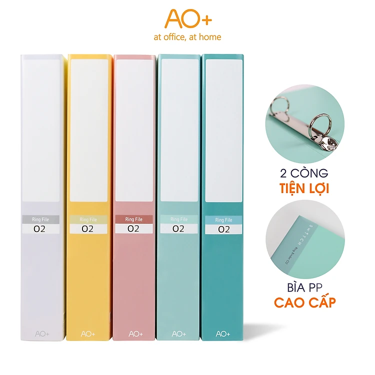 Bìa Còng O2 Switch ON AO+, Nhựa PP/ A4, 2 Nhẫn O (2.6cm/ 3.2cm)