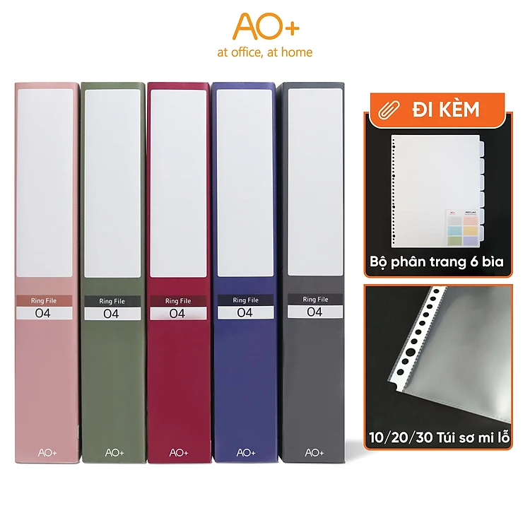 Bìa Còng O4 Switch OFF AO+, Nhựa PP/ A4, 4 Nhẫn O, Kèm Bộ Phân Trang và Túi Sơ Mi Lỗ, (25/35/50 mm)