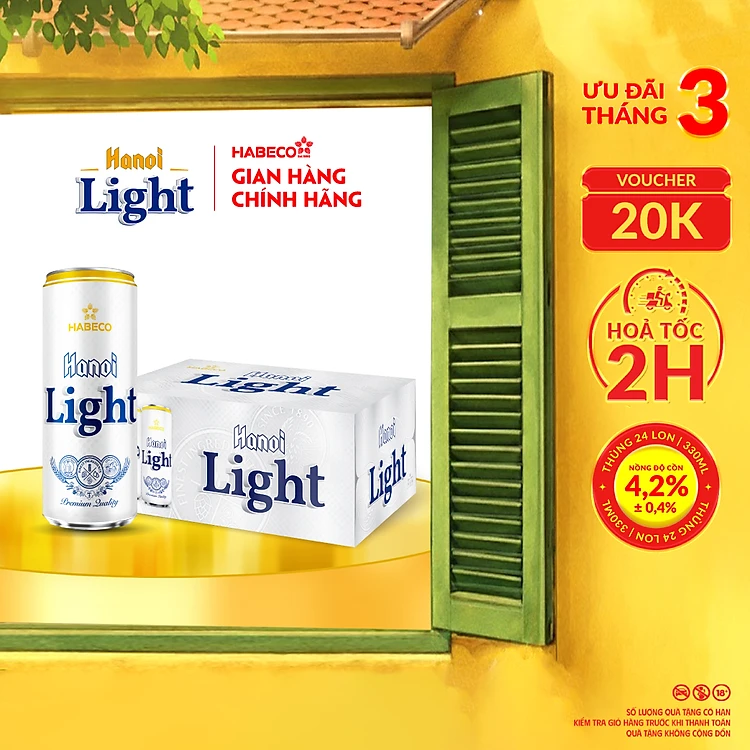 Bia Hanoi Light - Thùng 24 lon 330ml