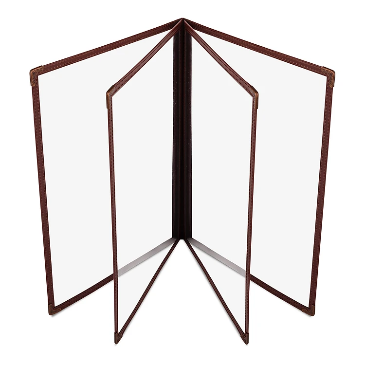 Độ bền cao: Bìa menu 8 trang - A4 - Màu Đen - Nâu này giúp bảo vệ bản in của menu không bị thấm nước, trầy xước, tăng độ chắc chắn của thực đơn.