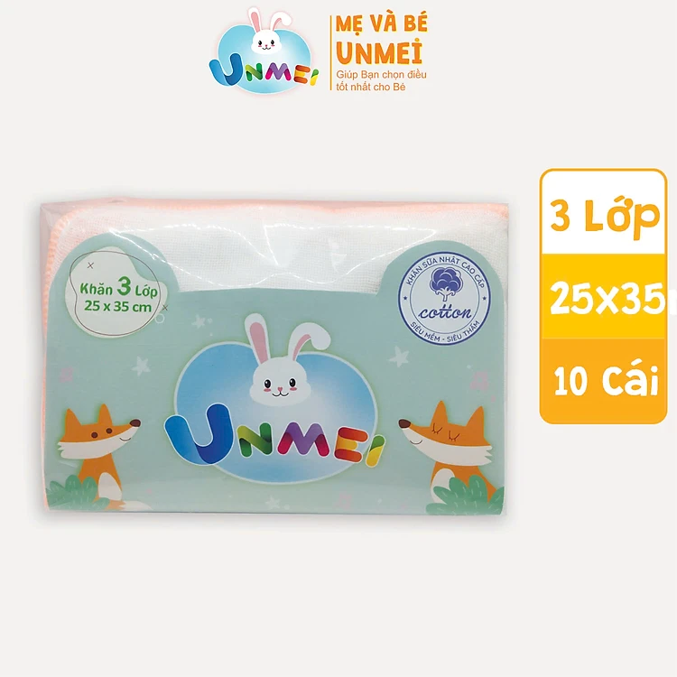 Bịch 10 Cái Khăn Sữa UNMEI 100% Cotton, Dày 3 Lớp Dành Cho Bé Từ Sơ Sinh (Kích Thước 25x35cm)