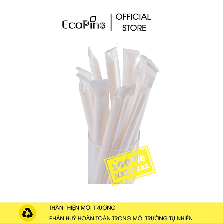 Bịch 50 ống hút giấy phi 12mm trắng ECOPINE (Có bọc giấy)