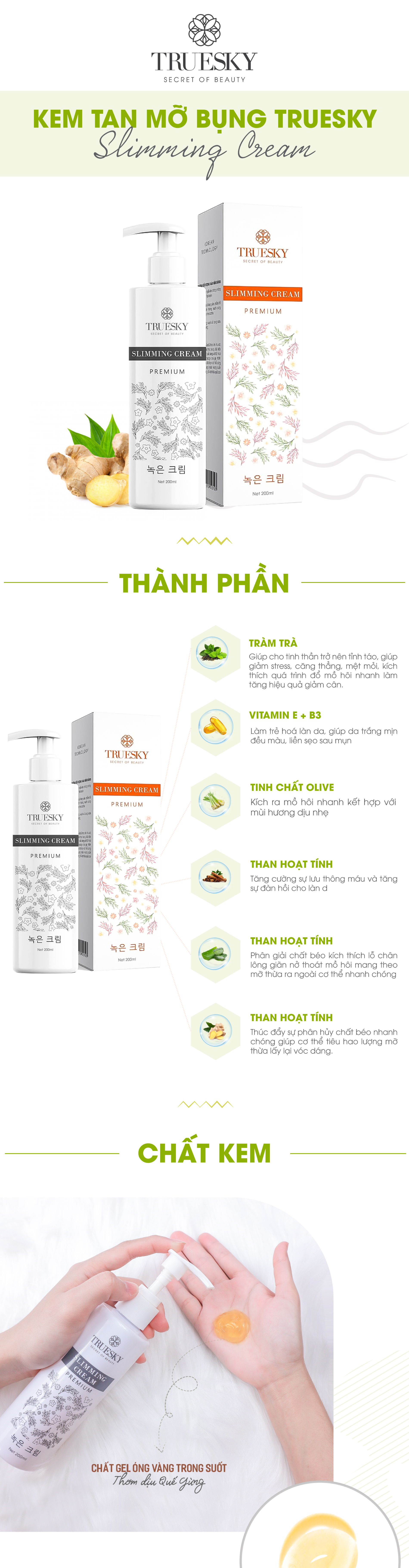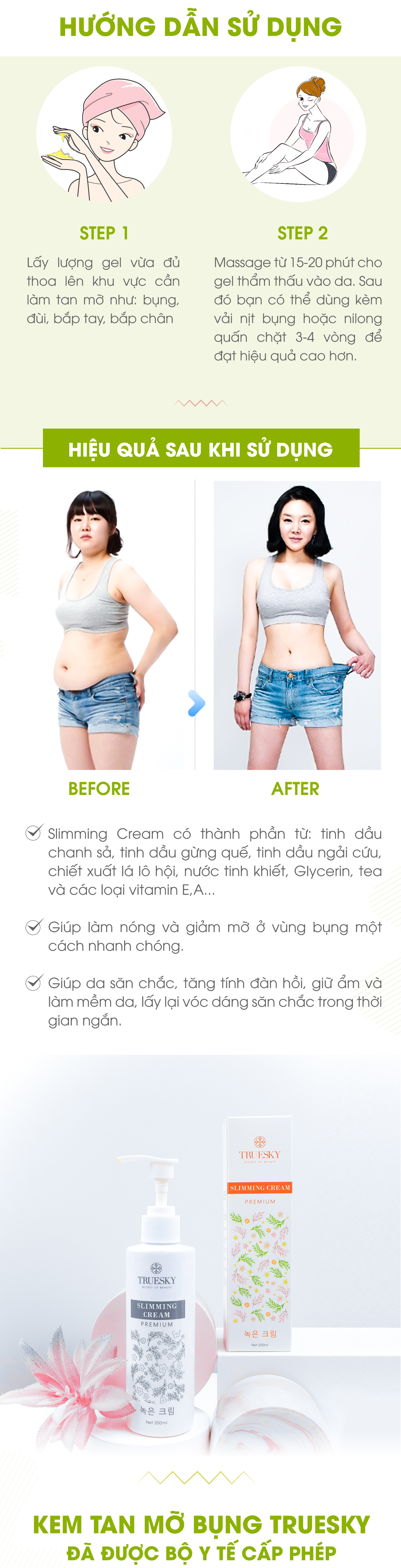 Bigsize - Bộ sản phẩm tan mỡ bụng an toàn và hiệu quả Truesky gồm 1 kem tan mỡ bụng quế gừng 200g + 1 đại nịt bụng quấn nóng