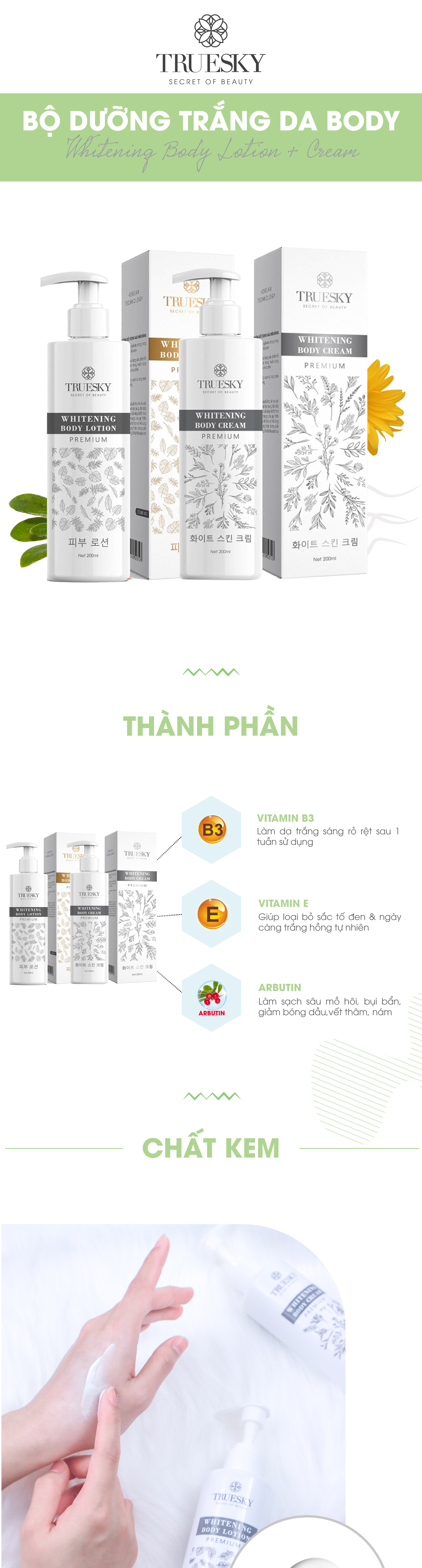 Bigsize - Bộ tắm trắng toàn thân Truesky gồm 1 kem ủ trắng toàn thân 200g và 1 kem dưỡng trắng toàn thân 200g