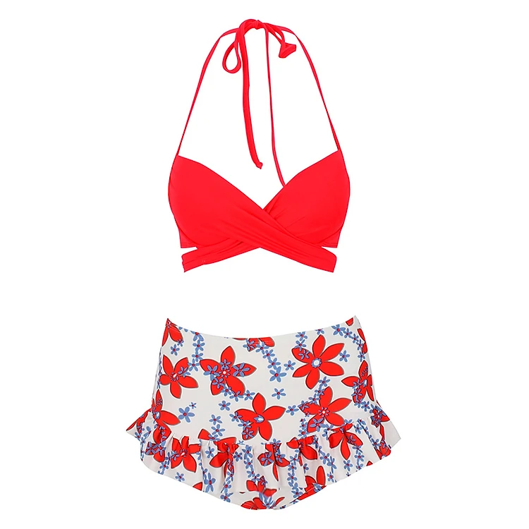 Bikini 2 Mảnh In Hoa Đỏ Peace's LC48 - Freesize