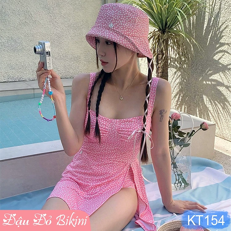 Bikini liền thân cao cấp kèm mũ xinh, áo tắm nữ một mảnh phong cách Hàn quyến rũ, kín đáo dễ mặc, chất thun bơi lạnh mịn đẹp | KT154