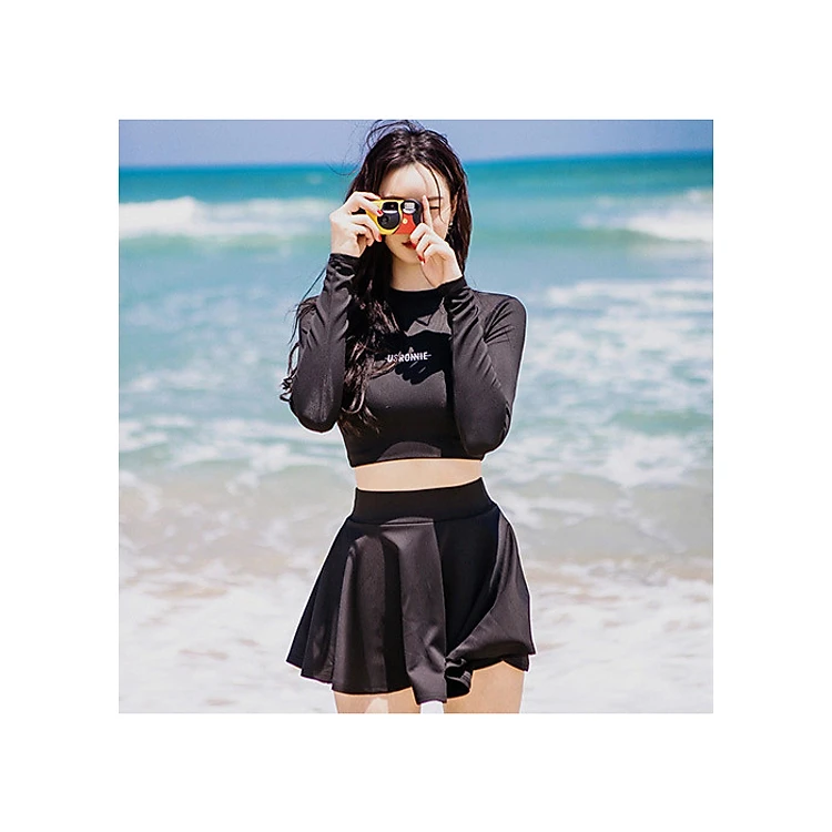 Bikini váy bơi nữ dài tay đen