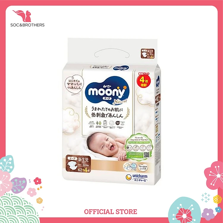 Bỉm dán cao cấp Moony Natural Organic size NB 62+4
