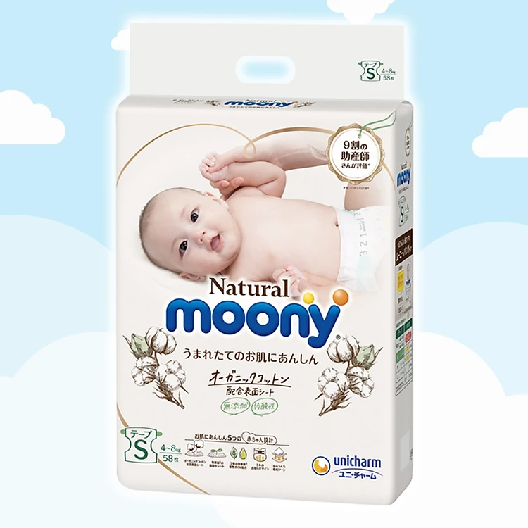 Moony Natural là dòng tã siêu cao cấp được nhập khẩu nguyên gói từ Nhật Bản. Với chất lượng vượt trội cùng thiết kế độc quyền C-shape - thiết kế đặc biệt dành cho bé, tã dán Moony Natural tự hào là dòng tã được Hiệp hội các bà mẹ Nhật Bản bình chọn là dòng tã em bé số 1. Tã/Bỉm dán Moony Natural là sản phẩm tã siêu cao cấp với bề mặt Organic đầu tiên tại Nhật Bản cho làn da nhạy cảm của bé sẽ là hỗ trợ bố mẹ tối đa trong việc chăm sóc và bảo vệ sức khỏe của bé.