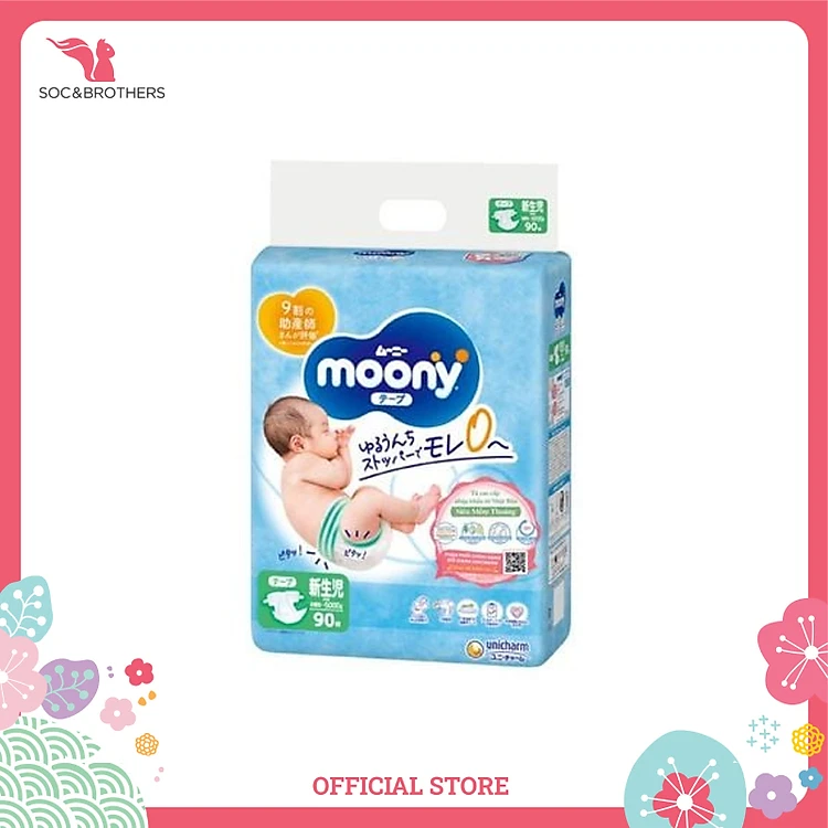 Bỉm dán Moony xanh tiêu chuẩn size Newborn 90