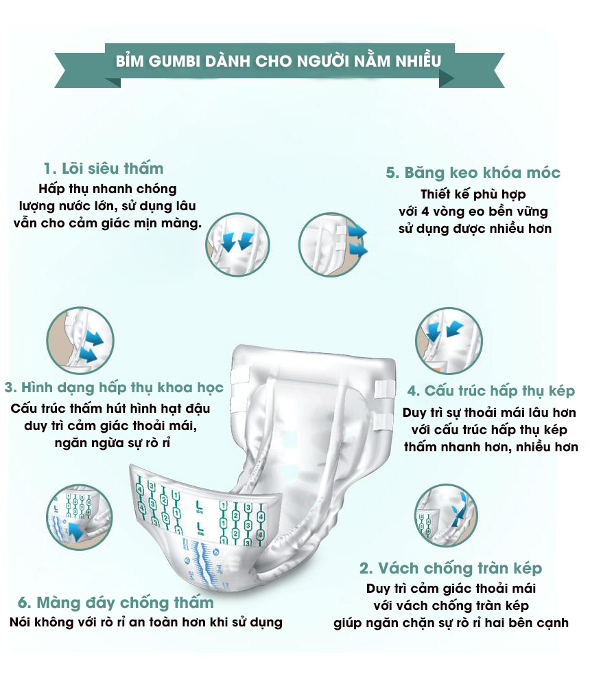 GumBi dòng tã bỉm người già với mặt bông Organic với thiết kế tinh sảo dựa theo cấu trúc cơ thể là sự lựa chọn hàng đầu của người tiêu dùng.