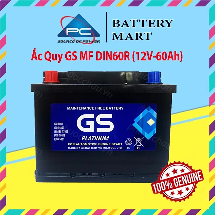 Bình Ắc Quy 12V-60Ah, Ắc Quy Ô Tô GS MF DIN60L/R/LBN
