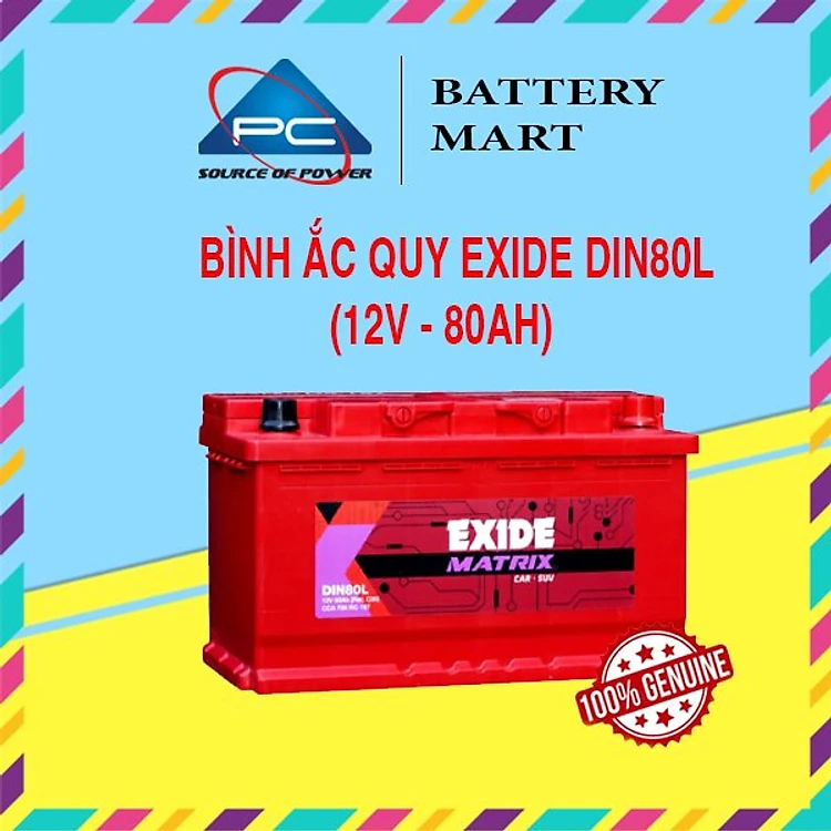 Bình Ắc Quy EXIDE DIN80L 12V-80Ah