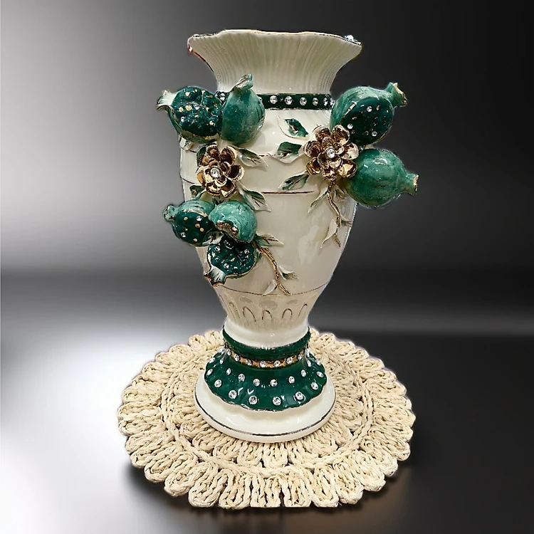 Bình Cắm Hoa Dáng Âu Họa Tiết Chùm Lựu Dát Vàng - Gốm Sứ Cao cấp