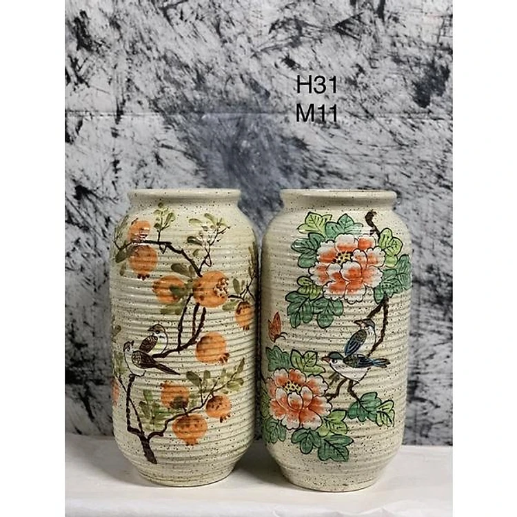 Bình cắm hoa gốm sứ Bát Tràng, men mộc, họa tiết vẽ thủ công.