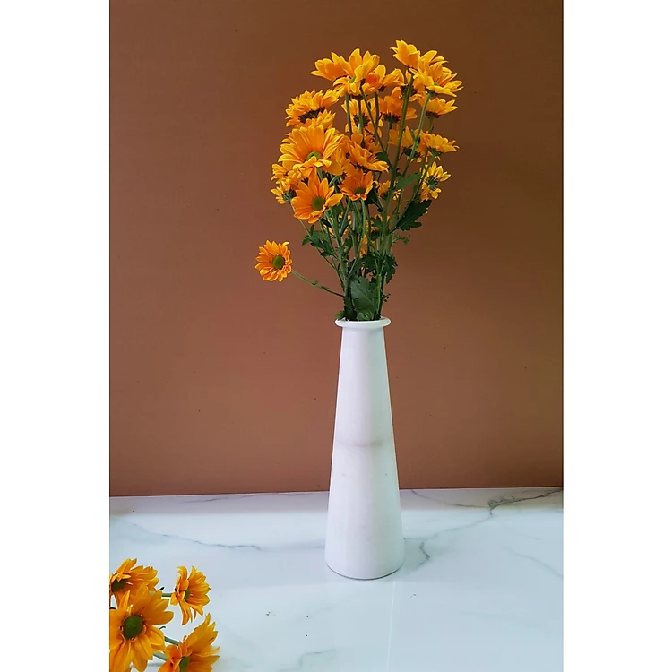 Bình cắm hoa làm từ đá tự nhiên nguyên khối màu Trắng BH29511T