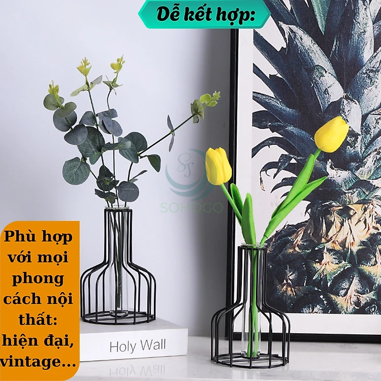 Lọ Hoa Nghệ Thuật Khung Sắt Kèm Ống Thủy Tinh- Bình Hoa Trang Trí Khung Kim Loại Hiện Đại- Lọ Hoa Phong Cách Bắc Âu – Khung Sắt & Ống Thủy Tinh- Chân Đế Lọ Hoa Sáng Tạo Decor Nhà Cửa- Bình Hoa Mini Trang Trí Bàn Làm Việc/Phòng Khách