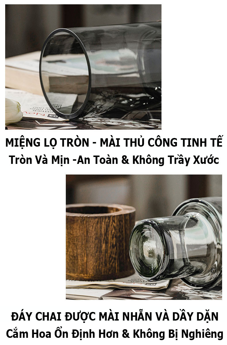 - Đáy bình thiết kế hữu ích để hoa không bị nghiêng, việc cắm hoa dễ dàng hơn.