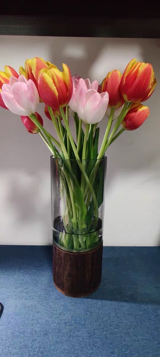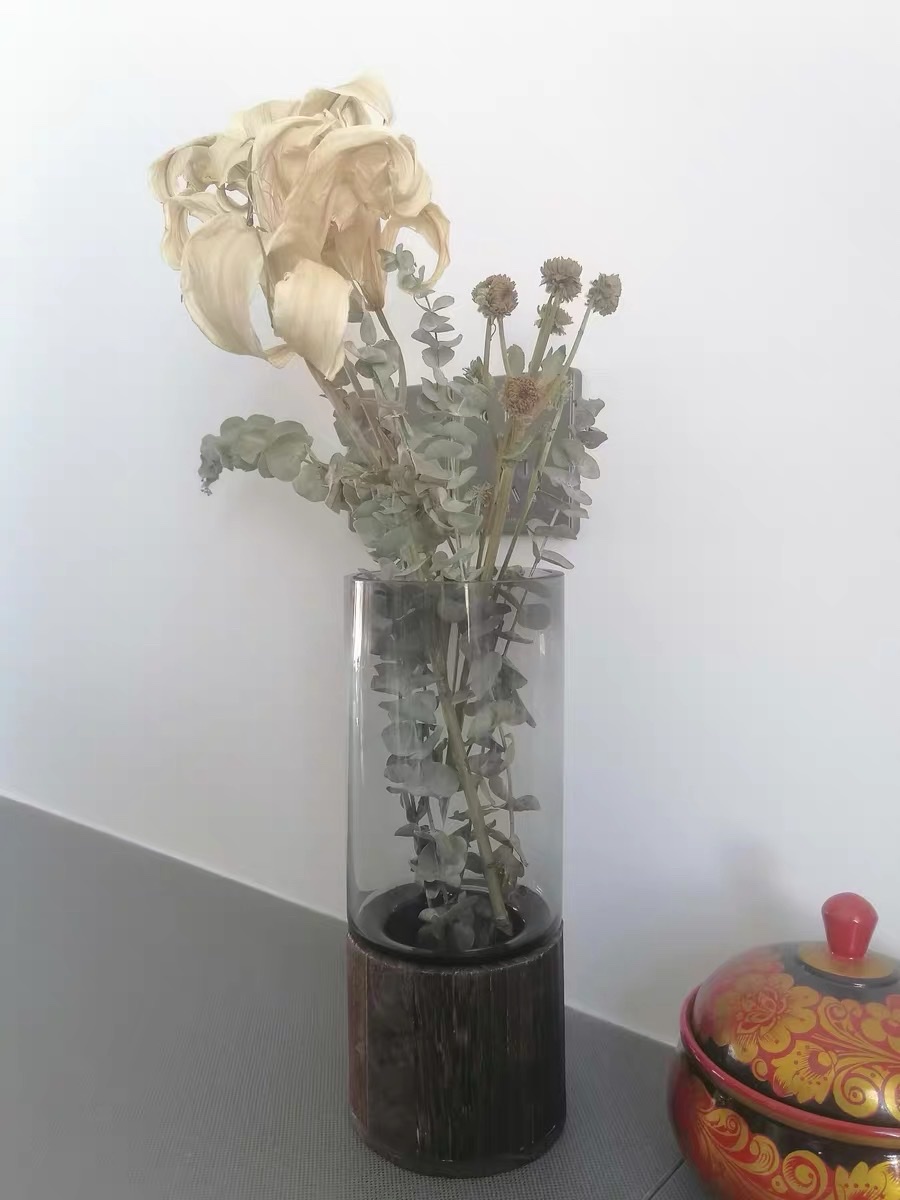 - Đế gỗ cứng, ngoài việc tôn thêm vẻ đẹp cho bình, còn có vai trò quan trọng chống vỡ khi đặt bình trực tiếp xuống mặt bàn.