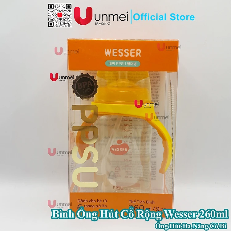 Bình Cổ Rộng Ống Hút PPSU Wesser (260ml), Bình Tập Uống Cho Bé Từ 6m+ Trở Lên, Có Tay Cầm Cho Bé