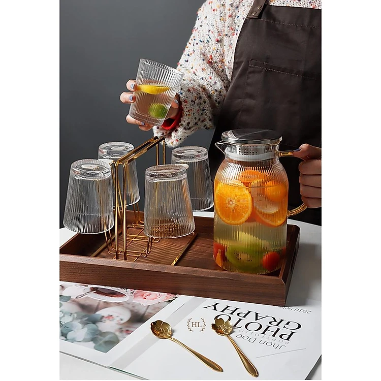 Bình cốc thuỷ tinh phong cách NORDIC kiểu kẻ Sọc | BỘ BÌNH CỐC BOROSILICATE SIÊU NHẸ - CHỊU NHIỆT - CƯỜNG LỰC