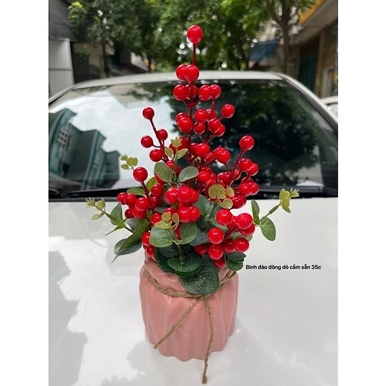 Bình đào đông đỏ giả cắm sẵn - cao 35cm - Cây giả, hoa lụa Decor trang trí nhà cửa