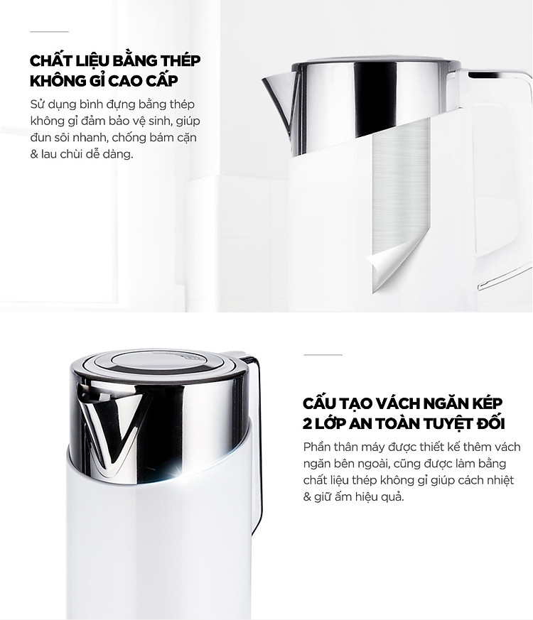 Công suất 1.850W giúp nước sôi nhanh tiết kiệm thời gian.