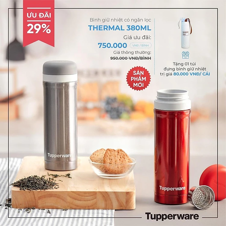 Bình Giữ Nhiệt Có Ngăn Lọc 380ML TẶNG túi đựng bình giữ nhiệt