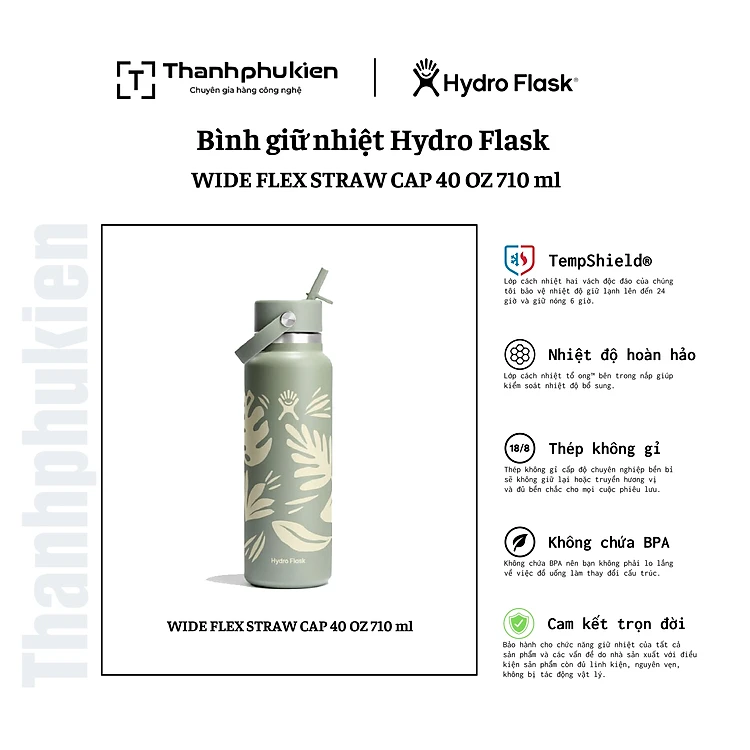 Bình giữ nhiệt Hydro Flask Wide Flex Straw Cap 40 OZ 1.183 ml – W40CFS [ Spring Limited Edition 2025 ]