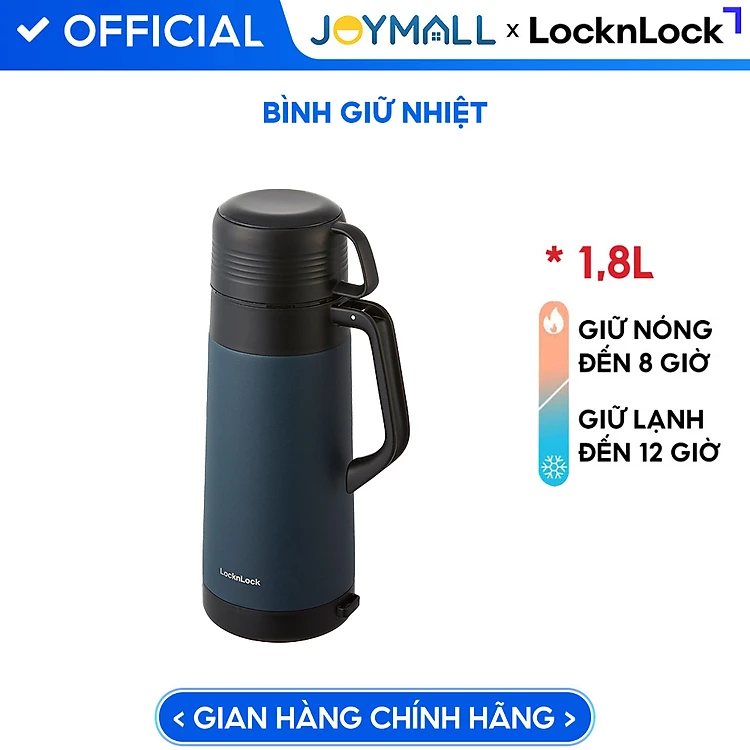 Bình giữ nhiệt Lock&Lock Easy Outdoor Vacuum Bottle màu xanh navy LHC1485NVY 1,8L - Hàng chính hãng có quai xách, nắp dùng làm cốc nước - JoyMall
