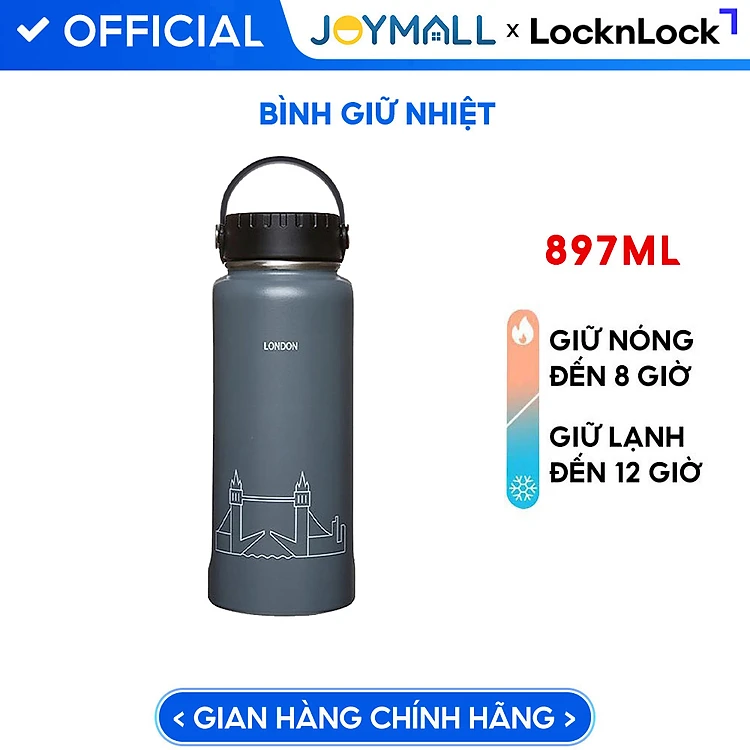 Bình Giữ Nhiệt Lock&Lock RigaTumbler màu xám LHC4160GRY dung tích 897ml - Hàng chính hãng, thép không gỉ - JoyMall