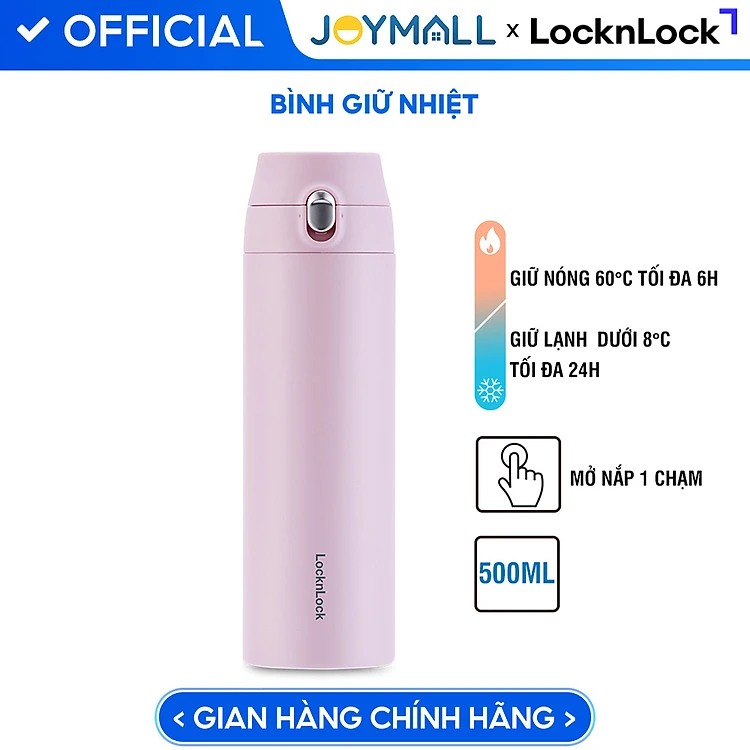 Bình Giữ Nhiệt LocknLock Featherlight One-touch Tumbler màu tím nhạt LHC3257LVOL 500ml - Hàng chính hãng, nắp bật tiện lợi - JoyMall