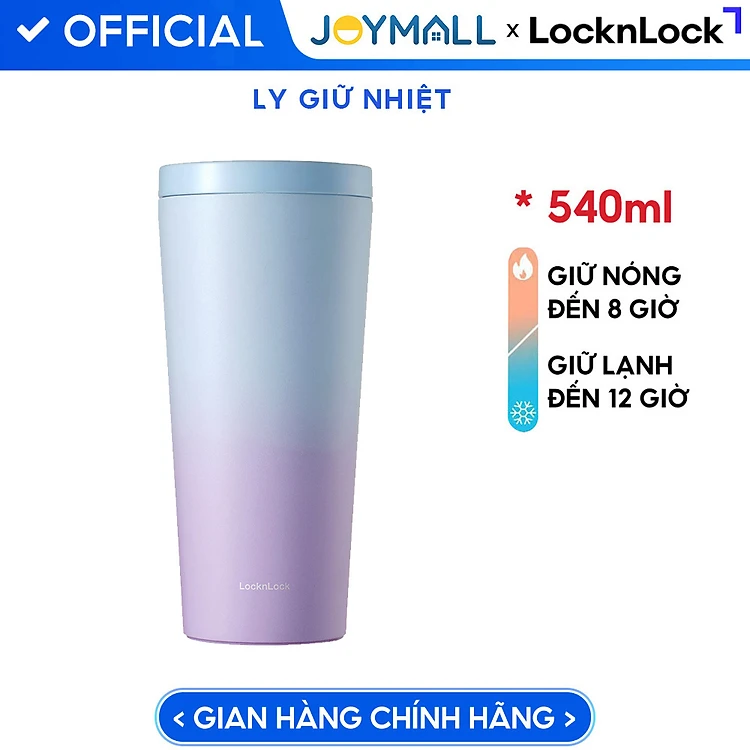 Bình giữ nhiệt LocknLock New Clip Tumbler màu tím LHC4279VOL 540ml, Hàng chính hãng, có 2 nắp thay thế - JoyMall
