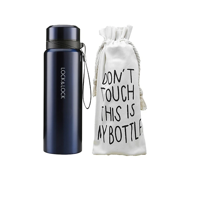 Bình Giữ Nhiệt Thép Không Gỉ Vacuum Bottle Lock&Lock LHC6180FU (800ml) - Xanh Đậm Kèm Túi Vải Tiện Lợi