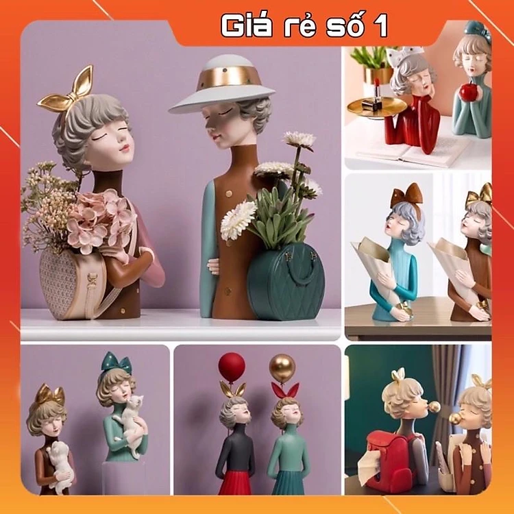Bình hoa cô gái - Cô gái cắm hoa - lọ hoa