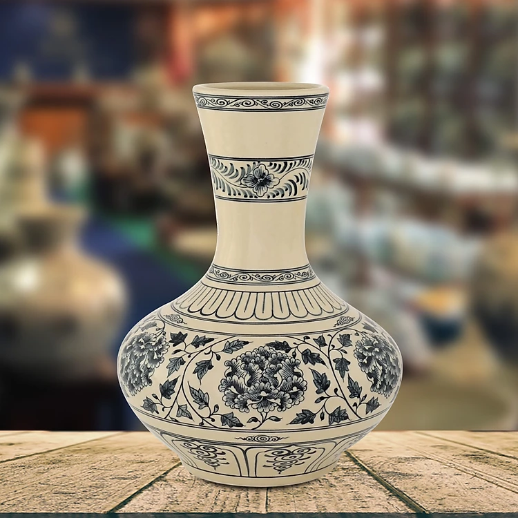 Bình hoa cúc quân tử gốm Chu Đậu (S3)