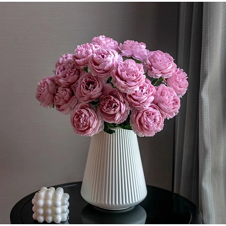 Bình hoa hồng trà hoa lụa cao cấp để bàn trang trí phòng khách, decor nhà hàng, spa, khách sạn đẹp mắt sang trọng