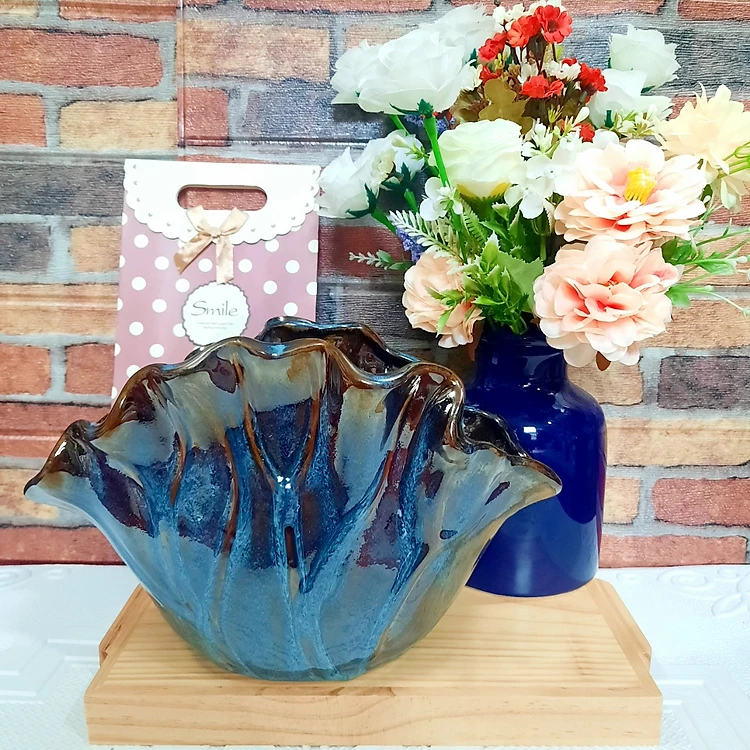 Bình hoa lá sen con hến mem hỏa biến gốm sứ Bát Tràng