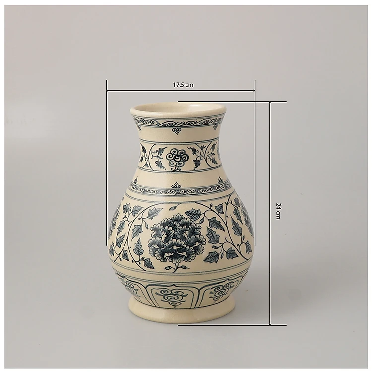 Bình hoa sen cổ gốm Chu Đậu (S1) - Kích thước F19.5 x H27 cm