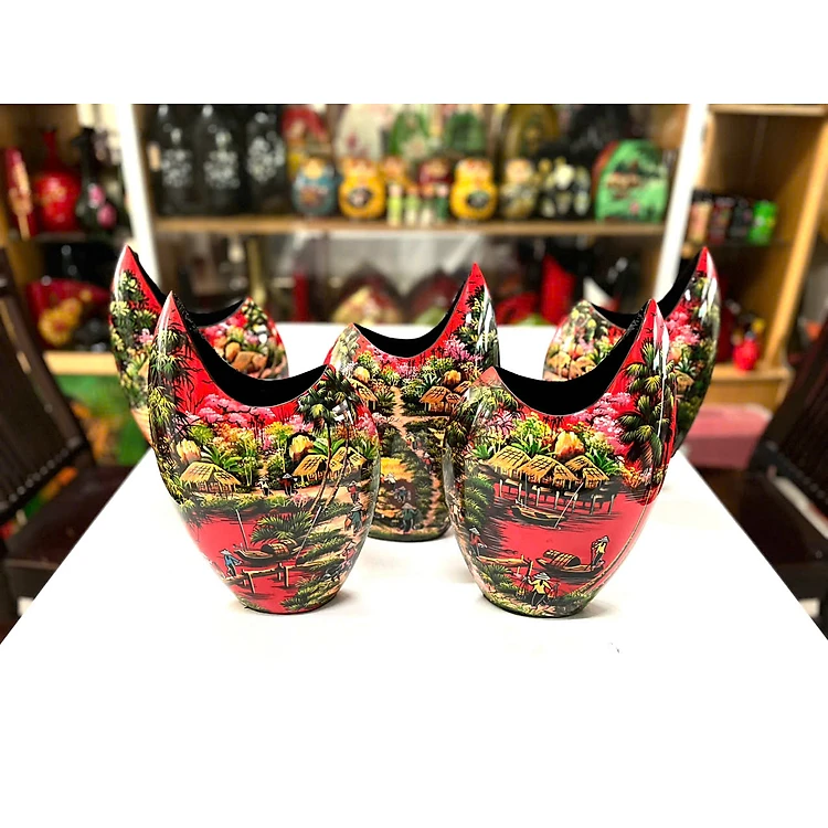 Bình hoa sơn mài cao cấp bình miệng cá với nhiều hoa văn khác nhau thích hợp cắm hoa, trang trí, làm quà tặng,....