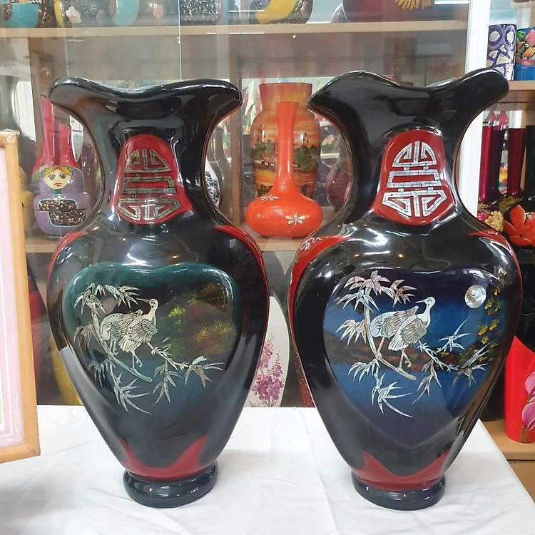 Bình hoa sơn mài trái tim Thanh Bình Lê cẩn ốc xà cừ chìm cao cấp đoạt giải sản phẩm tiêu biểu cấp Tỉnh cắm hoa, trang trí, làm quà tặng,...