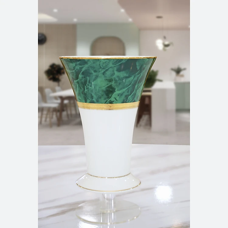 Bình hoa sứ cao cấp Noritake M164/T91825K, màu xanh lá, mạ vàng, miệng loe, cao 23cm - Hàng chính hãng