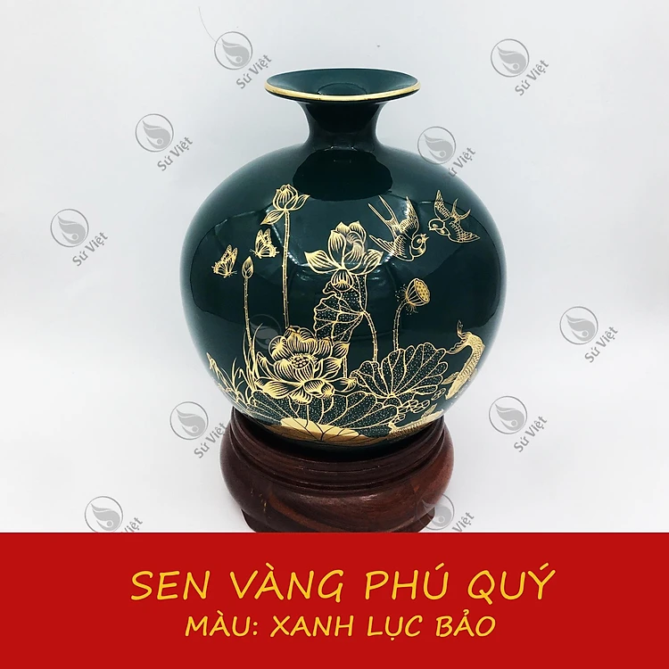 Bình Hút Lộc Vẽ Vàng Bát Tràng Sen Vàng Phú Quý