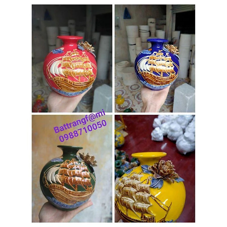 Bình hút tài lộc mini đắp nổi_thuận buồm xuôi gió,H18cm