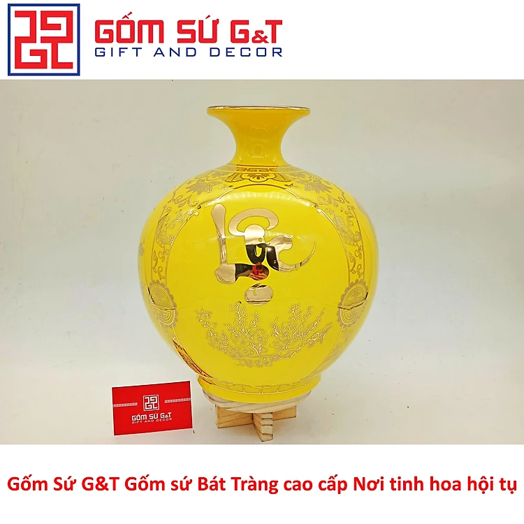 Bình hút tài lộc tứ cảnh Phúc Đức Tài Lộc vẽ vàng kim Gốm Sứ G&T