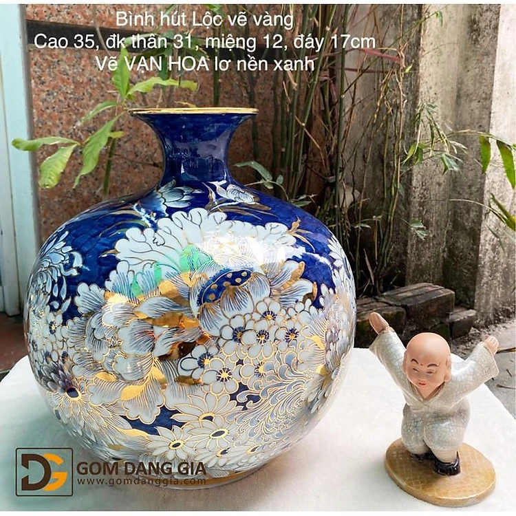 Bình hút tài lộc vẽ vàng men xanh cao 30cm các mẫu