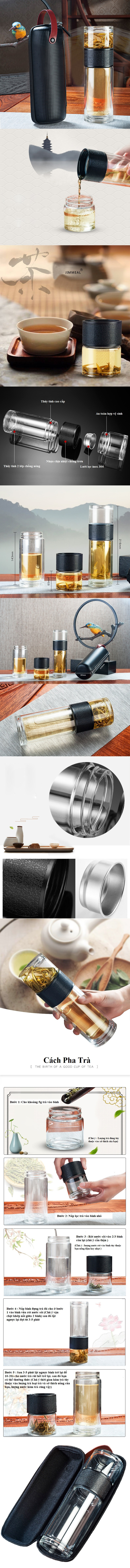 Bình Lọc Trà Du Lịch Bình Pha Trà Bình Hãm Trà Có Lõi Lọc 2 Lớp Cách Nhiệt Chống Nóng JIMMEAL 250ml + Tặng Hộp Đựng Bảo Vệ