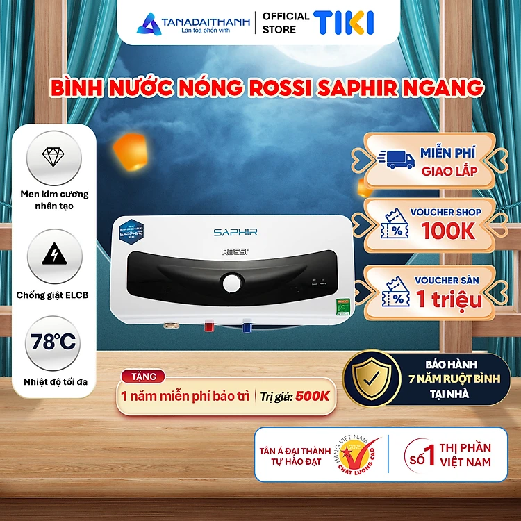 Bình nóng lạnh gián tiếp Rossi Saphir Ngang (15/20/30 Lít) - Chính hãng, Bảo Hành 7 năm
