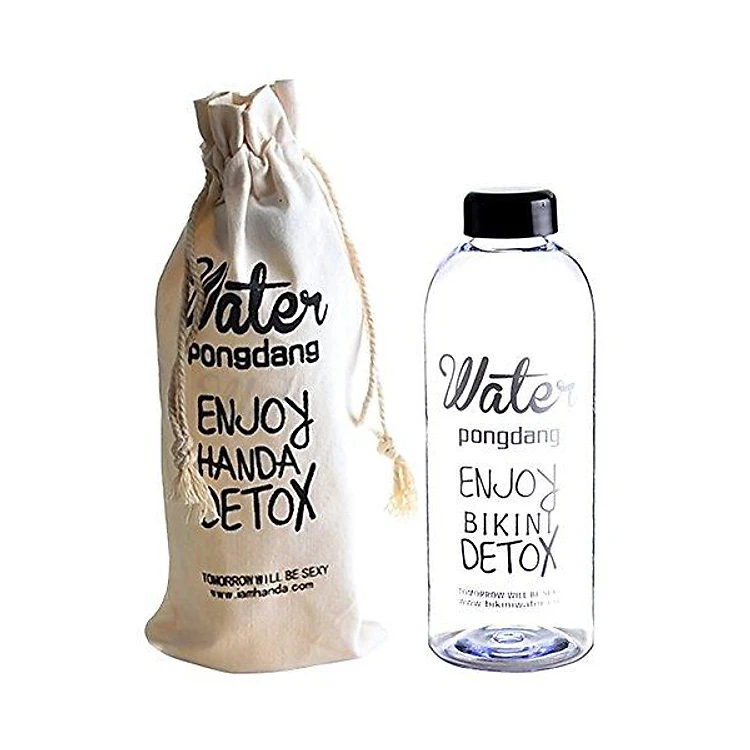 Bình Nước Detox Water Pongdang 1000 ml ( Màu Trong Suốt ) + 1 Túi Vải Ms-5