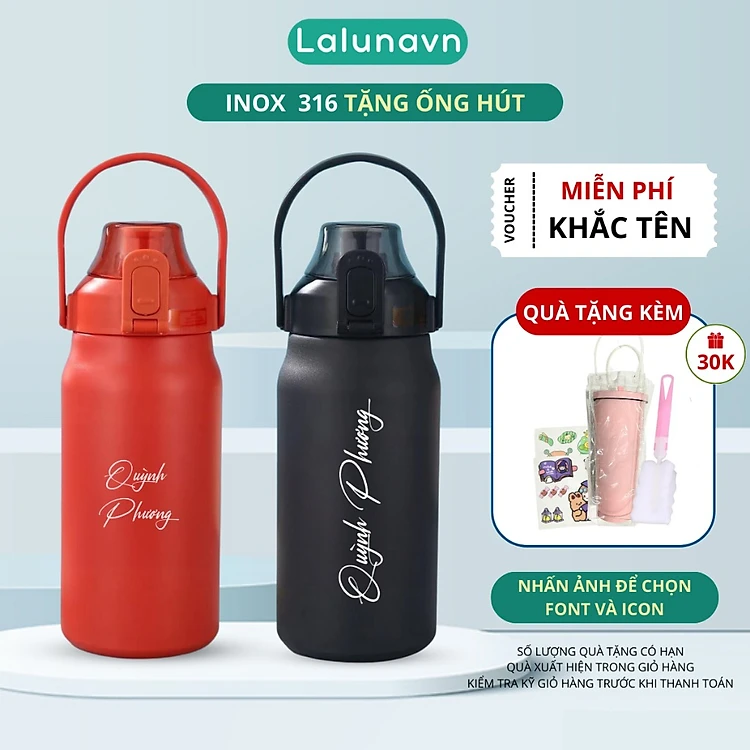 Bình Nước Giữ Nhiệt Laluna khắc tên chất liệu Thép Không Gỉ 316 1300ml Chất Lượng B165